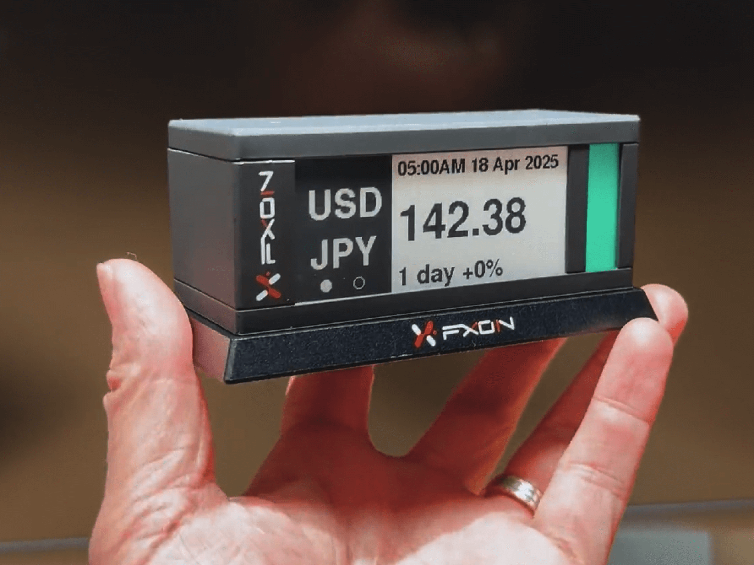 TickrMeterは、いつものデスクに置くだけで、まるでプロのディーリングルームにいるかのようなトレード環境を演出してくれます。手のひらに収まるコンパクトサイズで、モニターの下やデスクのすみにもスッと収まる使いやすさも魅力のひとつ。その圧倒的な存在感は、トレーダーとしてのモチベーションを引き上げ、日々の取引にリアルな臨場感をもたらしてくれるでしょう。